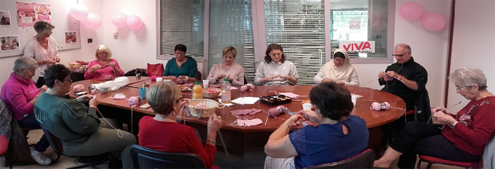 Avec une ambiance conviviale autour d’un petit déjeuner, nous avions ainsi organisé un appel aux bénévoles dans le cadre de l'opération Octobre Rose. Le but ? Tricoter solidairement des carrés. La confection de ces carrés de tricot roses seront remis à l’association Les Fées Roses* et seront par la suite rassemblés en couvertures qui seront offertes aux patientes atteintes d'un cancer. Et pour chaque carré tricoté, 1 € sera reversé à l’Institut Curie. Un grand merci à nos quatorze participantes et participants !