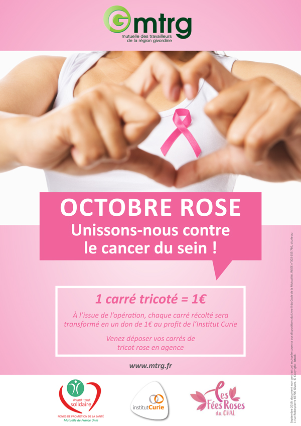 La MTRG se mobilise cette année dans la lutte contre le cancer du sein. En participant à Octobre Rose, nous donnons du sens à nos actions mutualistes de promotion de la santé et nous nous engageons à porter nos valeurs de solidarité chères à notre mutuelle.